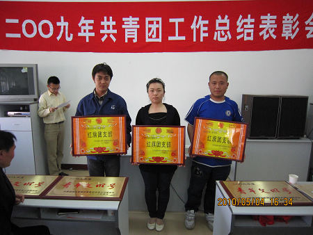 會議由團委委員陳慧通主持,團委負責人李金霞同志總結了2009年度共青團工作,團委委員郭英鑒宣讀表彰決定,共表彰獎勵了3個紅旗團支部、3個青年文明號集體、8名優(yōu)秀團干部、10名優(yōu)秀團員、8名優(yōu)秀青年崗位能手和4對好師徒。