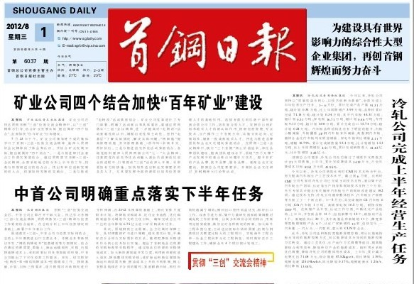 在8月1日發(fā)表的日報(總第6037期)頭版,刊登了題目為《正確的發(fā)展戰(zhàn)略是實現(xiàn)企業(yè)長遠發(fā)展的法寶》的文章,廣泛宣傳、介紹東星集團在開展“三創(chuàng)”活動中的典型經(jīng)驗,總公司網(wǎng)站同日轉(zhuǎn)載。