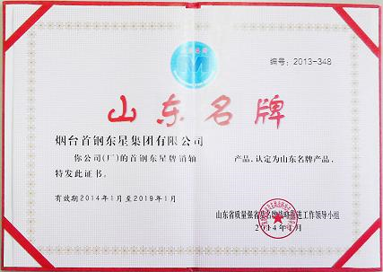 “東星”注冊商標的銷軸產品獲得山東省名牌產品稱號