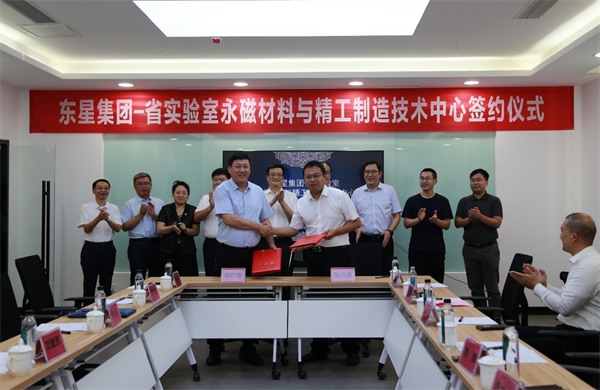 8月23日下午,煙臺東星集團(tuán)有限公司與中科院蘭化所的煙臺先進(jìn)材料與綠色制造山東實驗室、煙臺中科先進(jìn)材料與綠色化工產(chǎn)業(yè)技術(shù)研究院,在八角灣國際科創(chuàng)中心舉行了《永磁材料與精工制造技術(shù)中心共建合作協(xié)議》簽約儀式。中科院蘭州化學(xué)物理研究所副所長周峰;黃渤海新區(qū)工委副書記、管委副主任劉建民,工委委員、經(jīng)發(fā)科創(chuàng)局局長姚光磊,經(jīng)發(fā)科創(chuàng)局副局長趙玲;蘭州大學(xué)教授、長江學(xué)者秦勇;集團(tuán)公司領(lǐng)導(dǎo)和省實驗室領(lǐng)導(dǎo)共同出席簽約儀式。